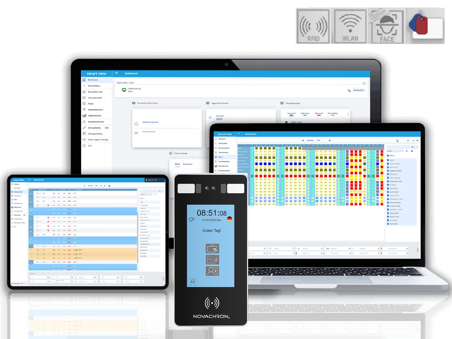 Wir verkaufen und warten Novachron-Smart Times Zeiterfassung-Komplettsysteme, rechnende und nicht rechnende Stempeluhren führender Marken.